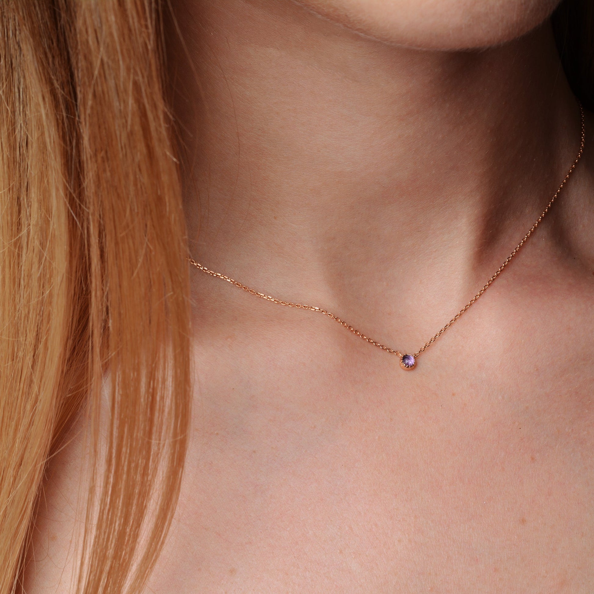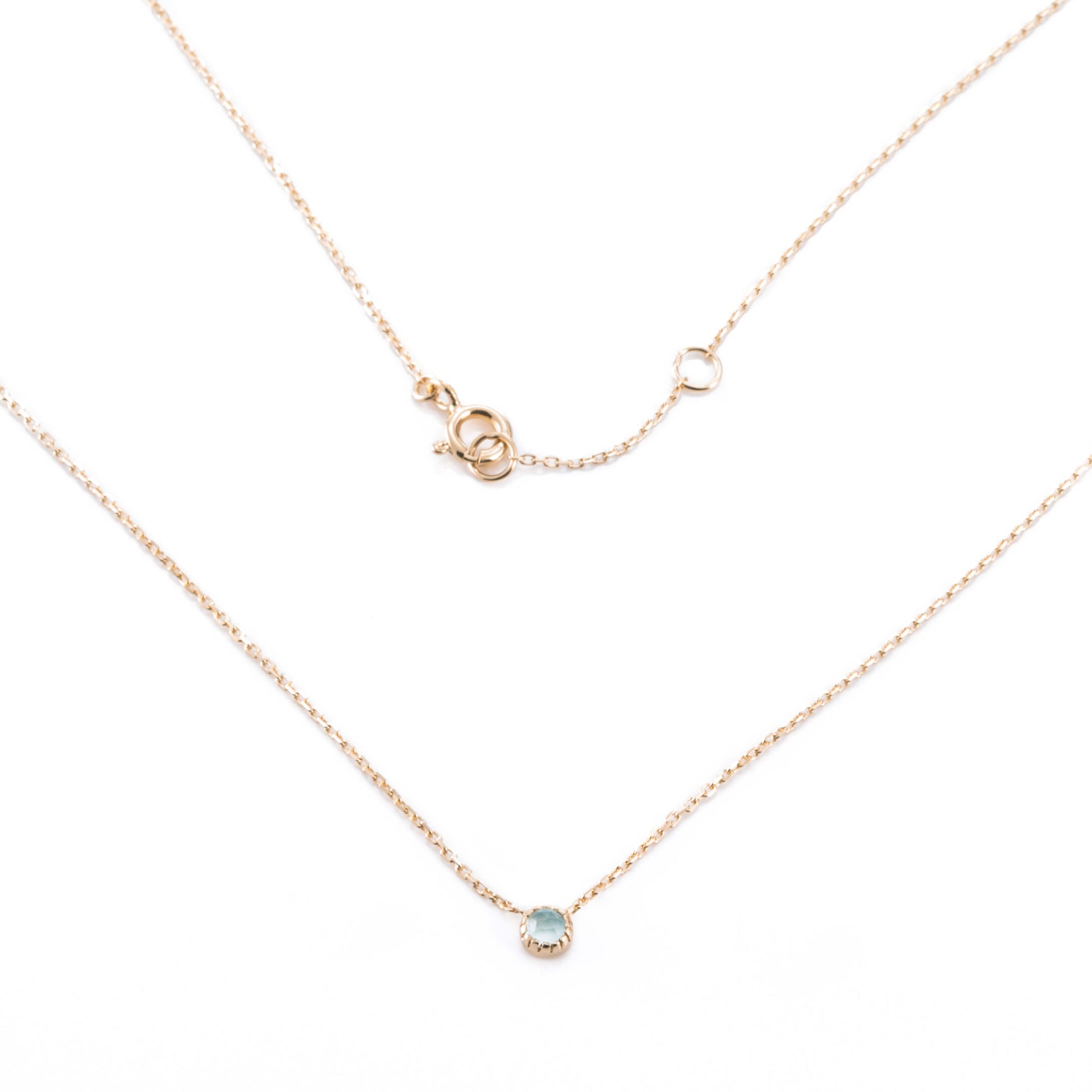 Eine schlichte Kette mit einem kleinen, runden Rosenschliff-Peridot im Zentrum. Der zarte Peritot fängt das Licht auf dezente Weise ein und verleiht der Kette einen eleganten Glanz.