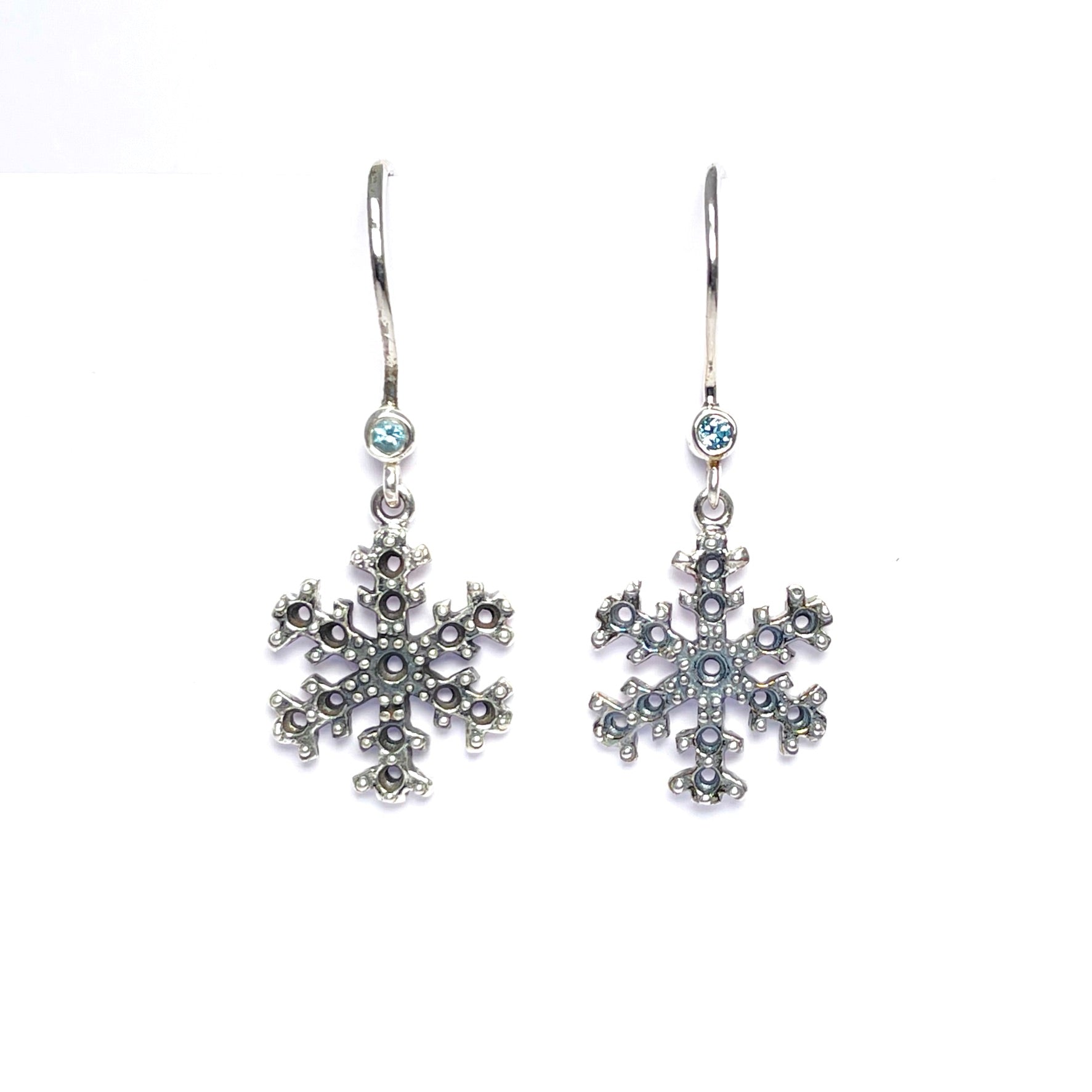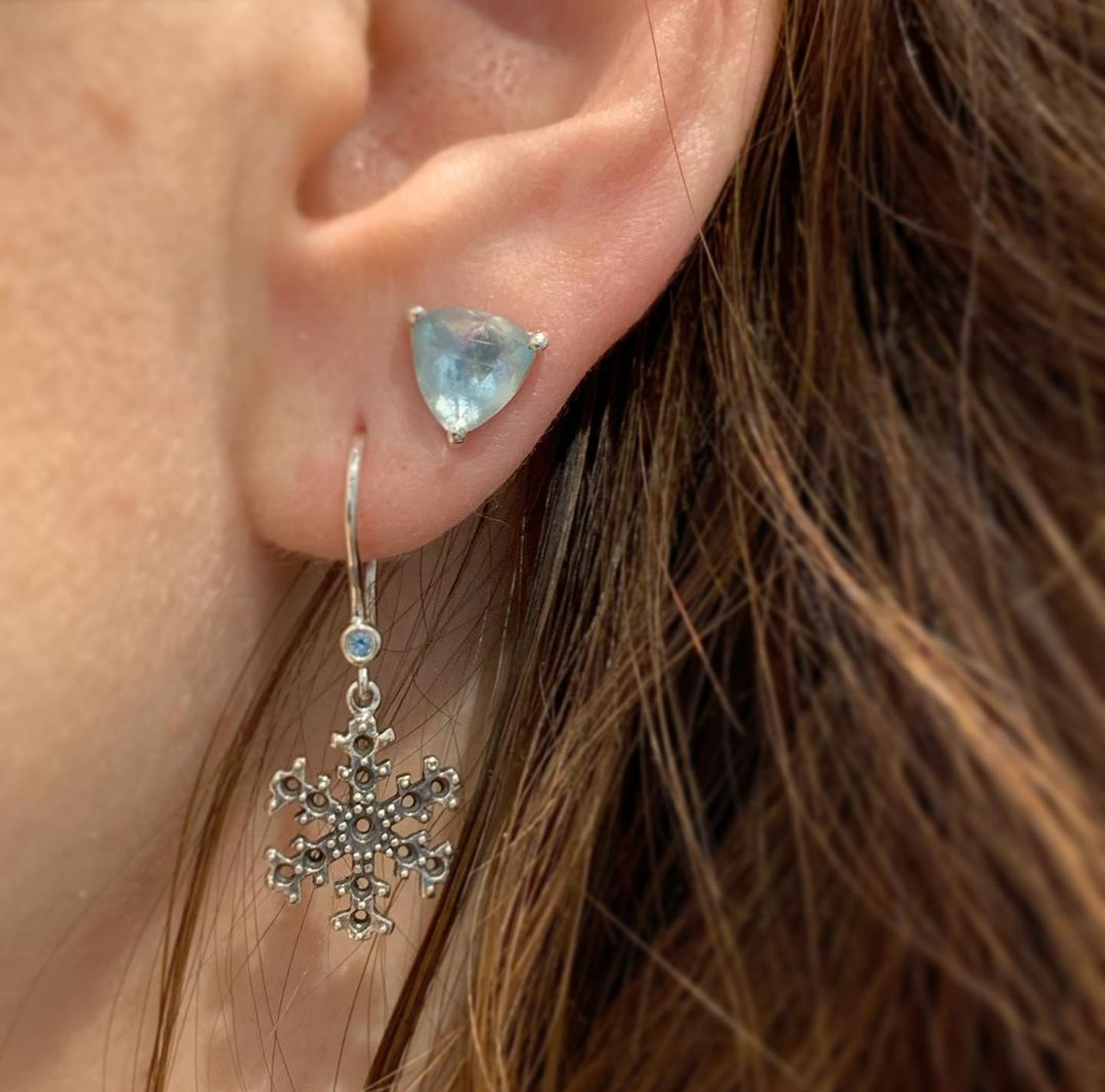 Dieser filigrane Ohrring besticht durch den Schneekristall-Anhänger und einen glitzernden Topas. Ein einzigartiges Schmuckstück für den Alltag.