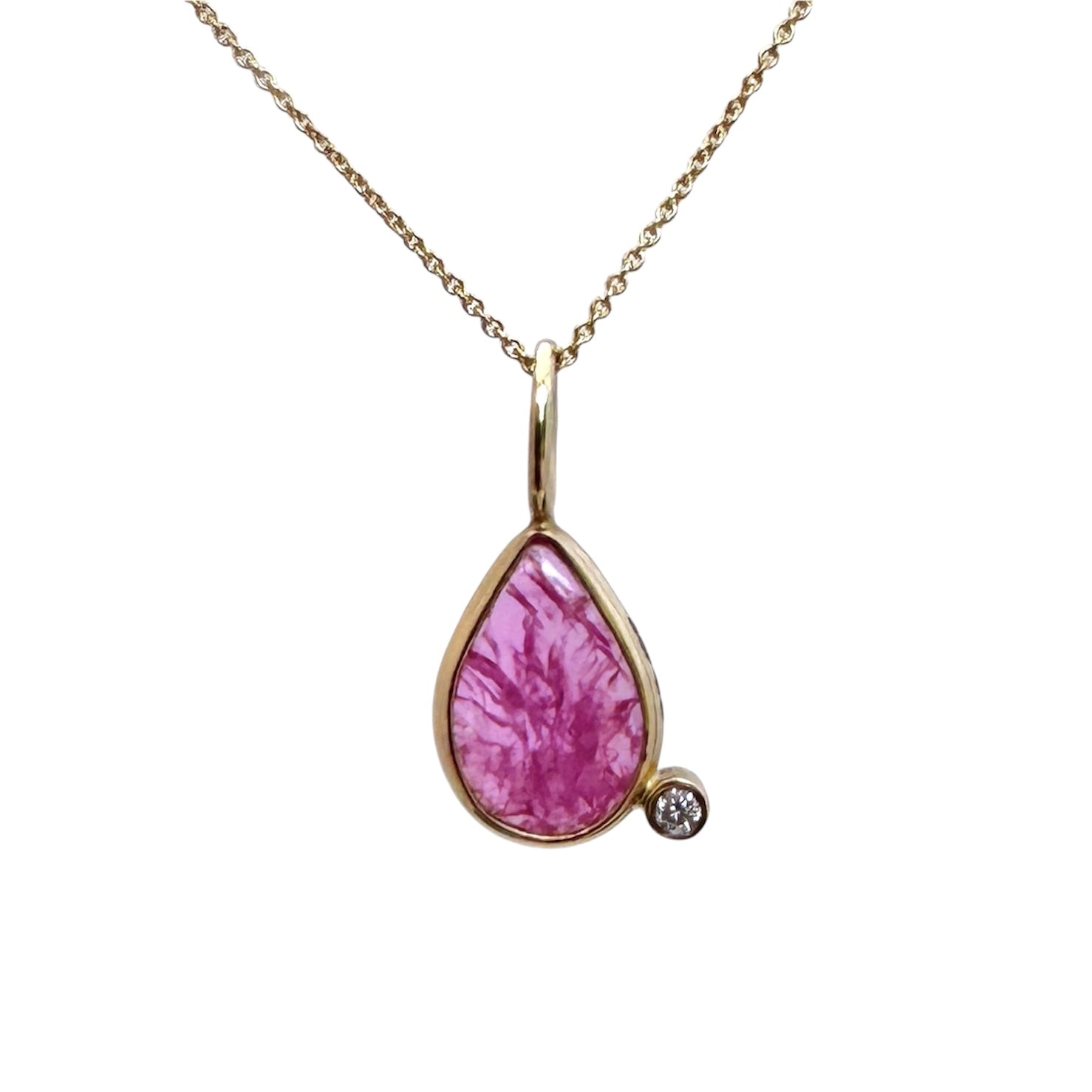 This delicate 18kt gold pendant captivates with its organically flowing shape, exuding natural elegance. A small, asymmetrically placed diamond, reminiscent of a beauty spot, lends the piece a unique touch. Perfect for lovers of fine, subtle details with a timeless appeal.