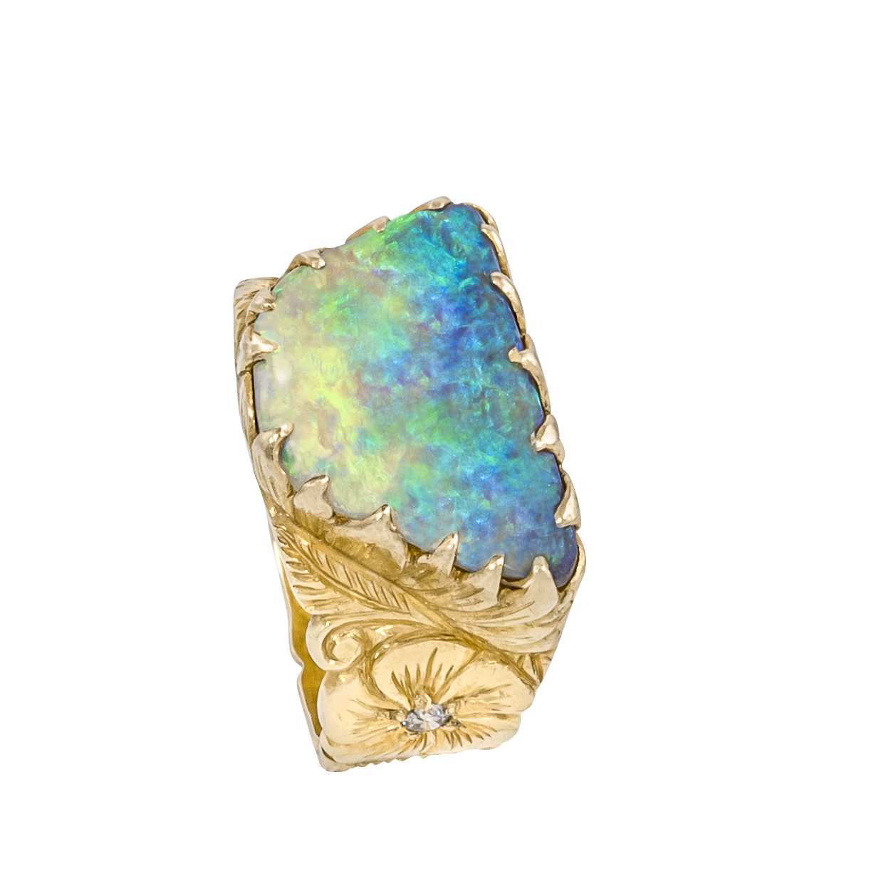Gravierter Opal Ring mit Diamanten 22kt Gold