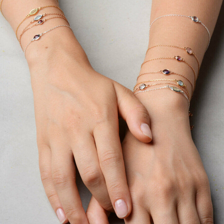 Das Indi Armkette in der vergoldeten Variante ist ein eleganter und filigraner Begleiter für Ihren Alltag. Die minimalistische Gestaltung verleiht einen Hauch von Leichtigkeit, während der zarte Edelstein im Rosenschliff für einen subtilen Akzent an Ihrem Handgelenk sorgt. Ideal alleine getragen oder in Kombination mit anderen Armbändern.