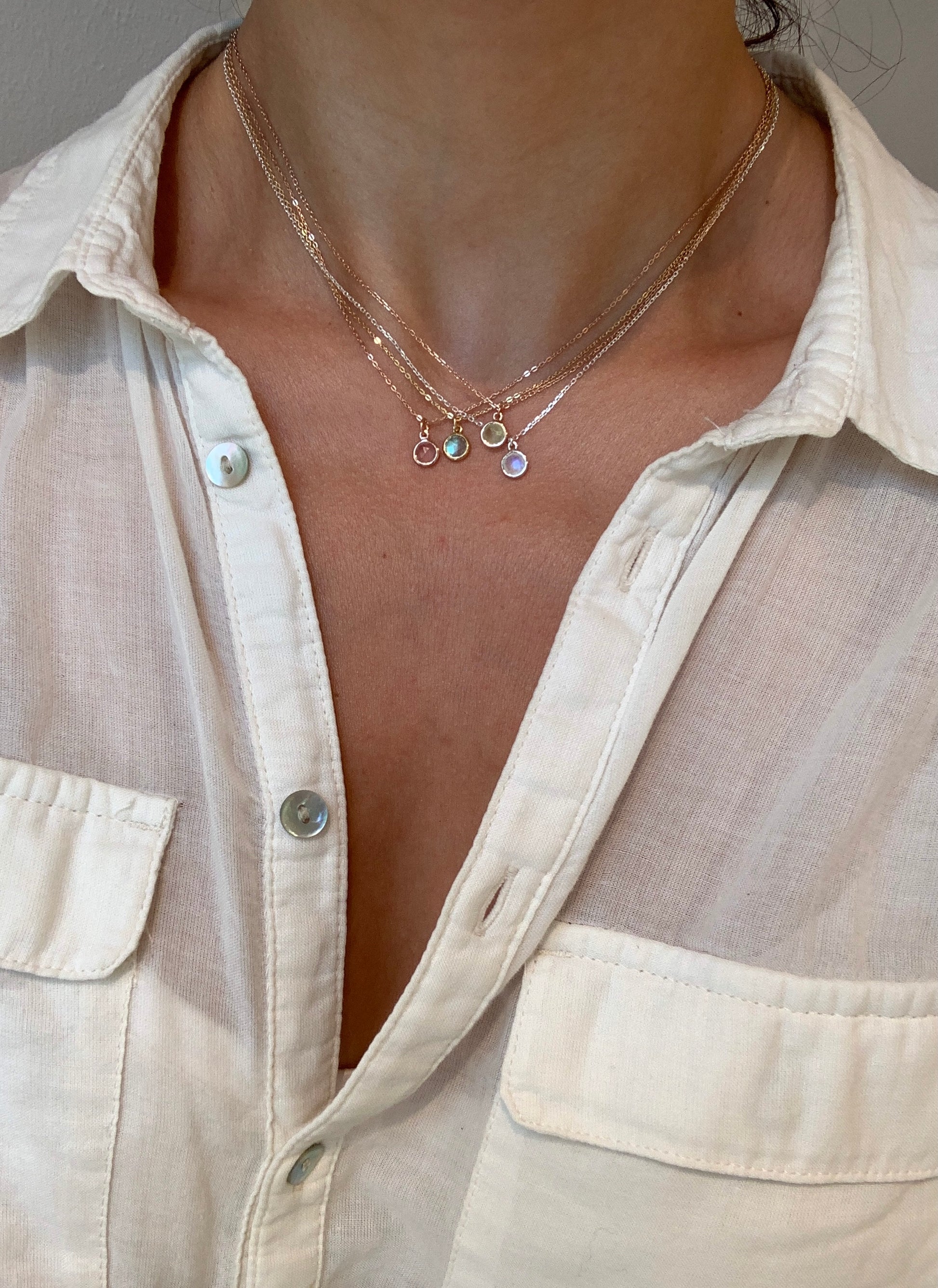 Die Indi Kette ist ein eleganter und filigraner Begleiter für Ihren Alltag. Die minimalistische Gestaltung verleiht einen Hauch von Leichtigkeit, während die zarten Steine in Rosenschliff für einen subtilen Akzent an Ihrem Hals sorgen. Ideal alleine getragen oder in Kombination mit anderen Ketten.