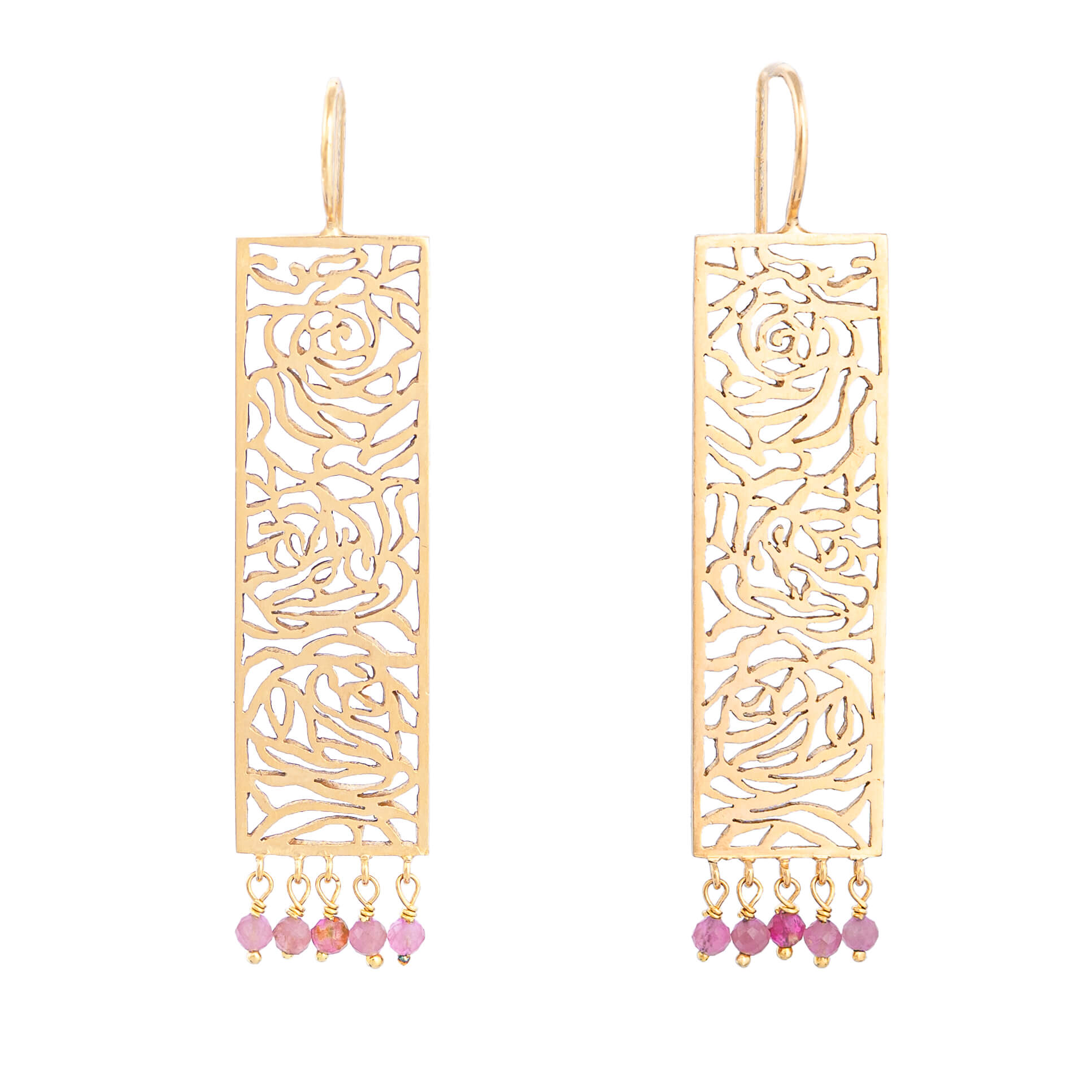 „Eleganter Ohrring aus Sterling-Silber erhältlich in Silber vergoldet mit einem kunstvoll handgesägten Rosenmuster, das an eine zarte Stoffbahn erinnert. Jeders Stück ist handgefertigt.