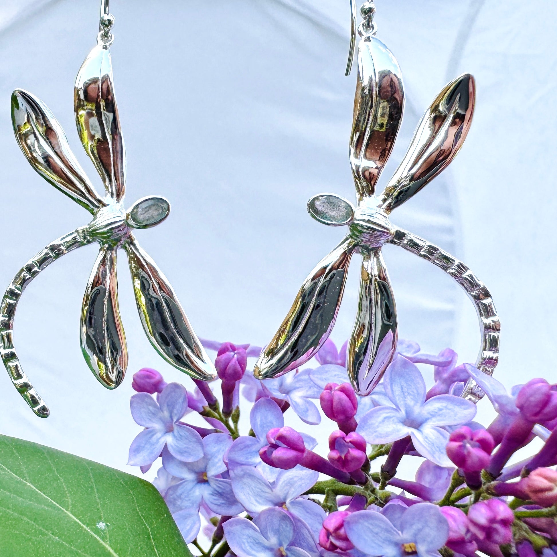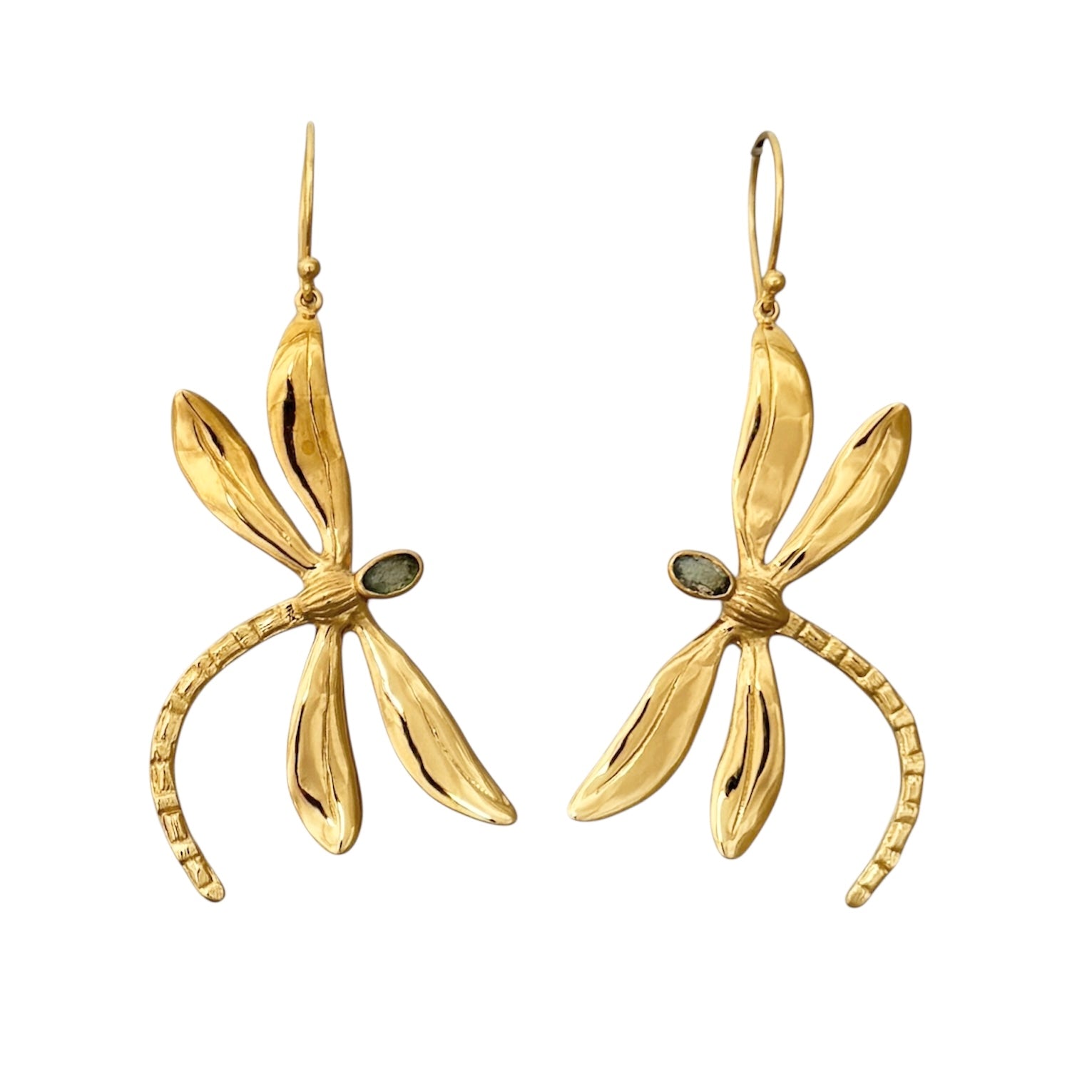 Libellen-Ohrring mit Labradorit in Silber und Silbervergoldet