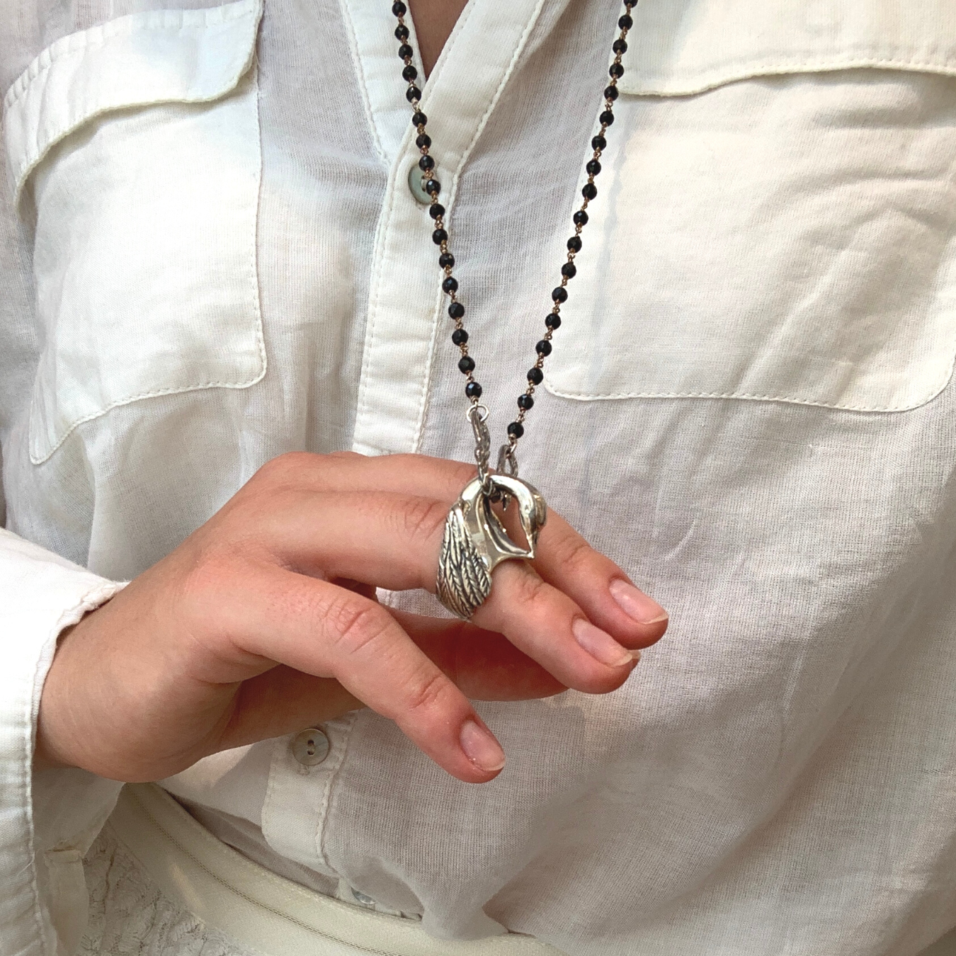 Der Schwan, ein Symbol für Anmut und Eleganz, begleitet Sie auf dieser wunderschönen Spinell-Kette, die auch als Ring getragen werden kann. Der Seelenvogel repräsentiert die Schönheit innerlich und äußerlich.