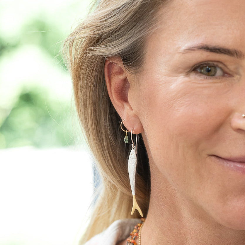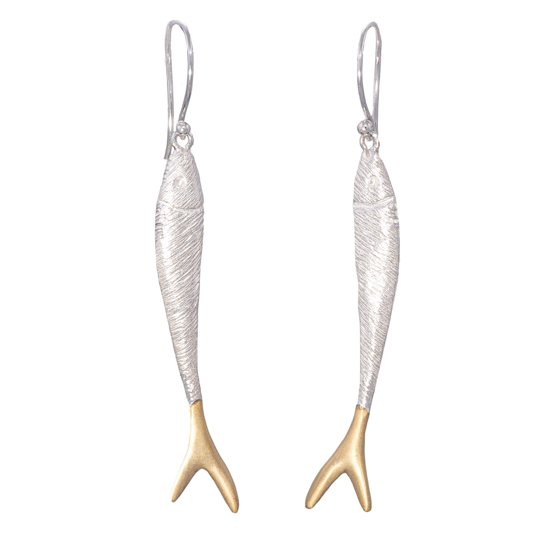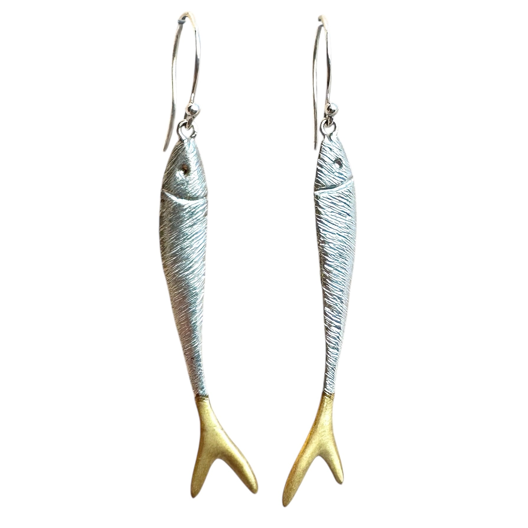 Präzise gefertigte Sardelle Ohrringe in naturgetreuer Größe aus hochwertigem Silber mit elegant vergoldetem Schwanz. Die detailreiche Darstellung dieser mediterranen Fischart verleiht jedem Sommeroutfit eine raffinierte maritime Note – ein unverzichtbares Accessoire für die warme Jahreszeit.