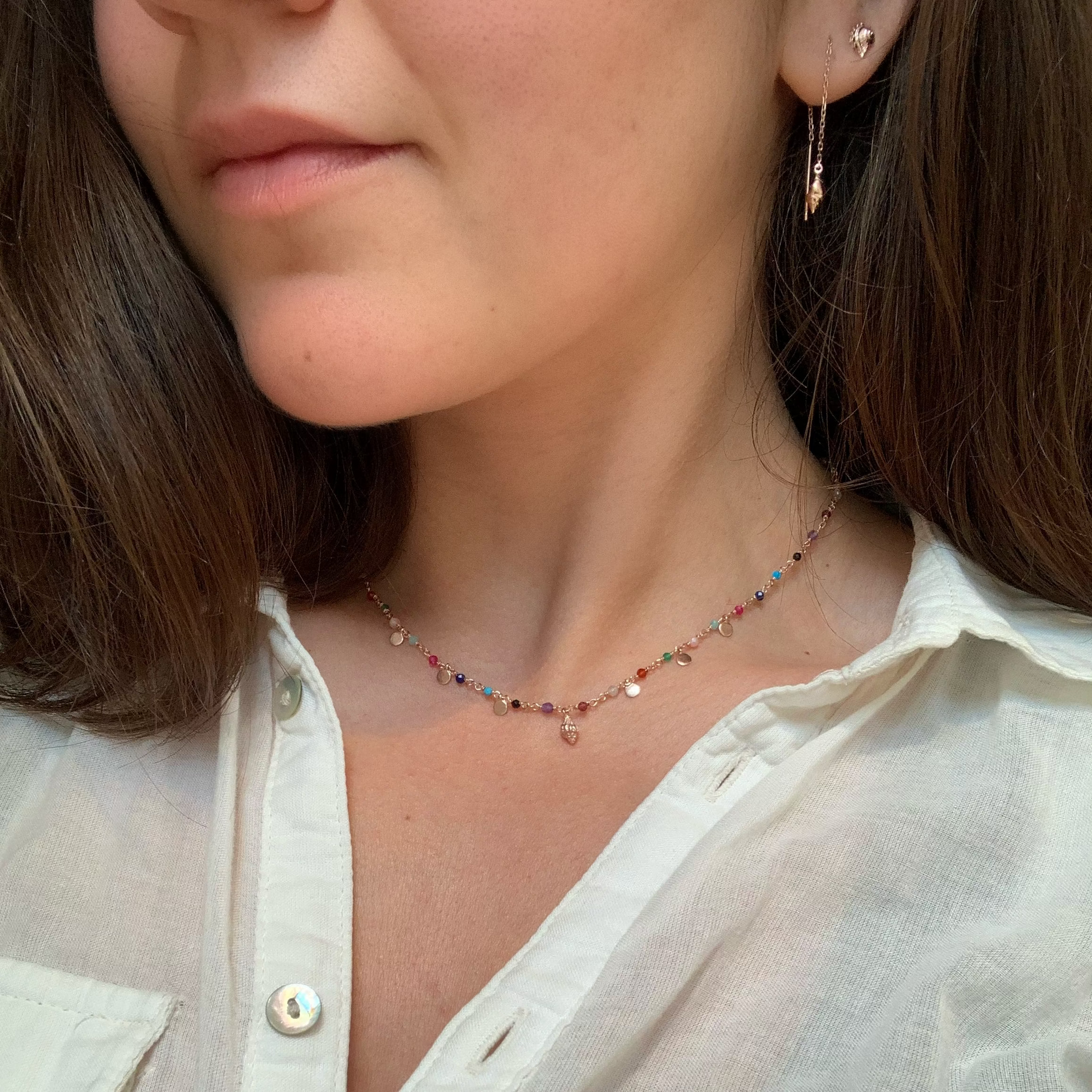 Unsere Shell Mangal Ketten sind handgefertigt aus feinem Silberdraht und echten bunten Edelsteinen. Die Muschel ist von einer echten Vorlage abgegossen und besteht aus 925 Sterling Silber. Einzigartig und voller Farbe, bringen sie das Gefühl von Sommer und Freude jeden Tag!