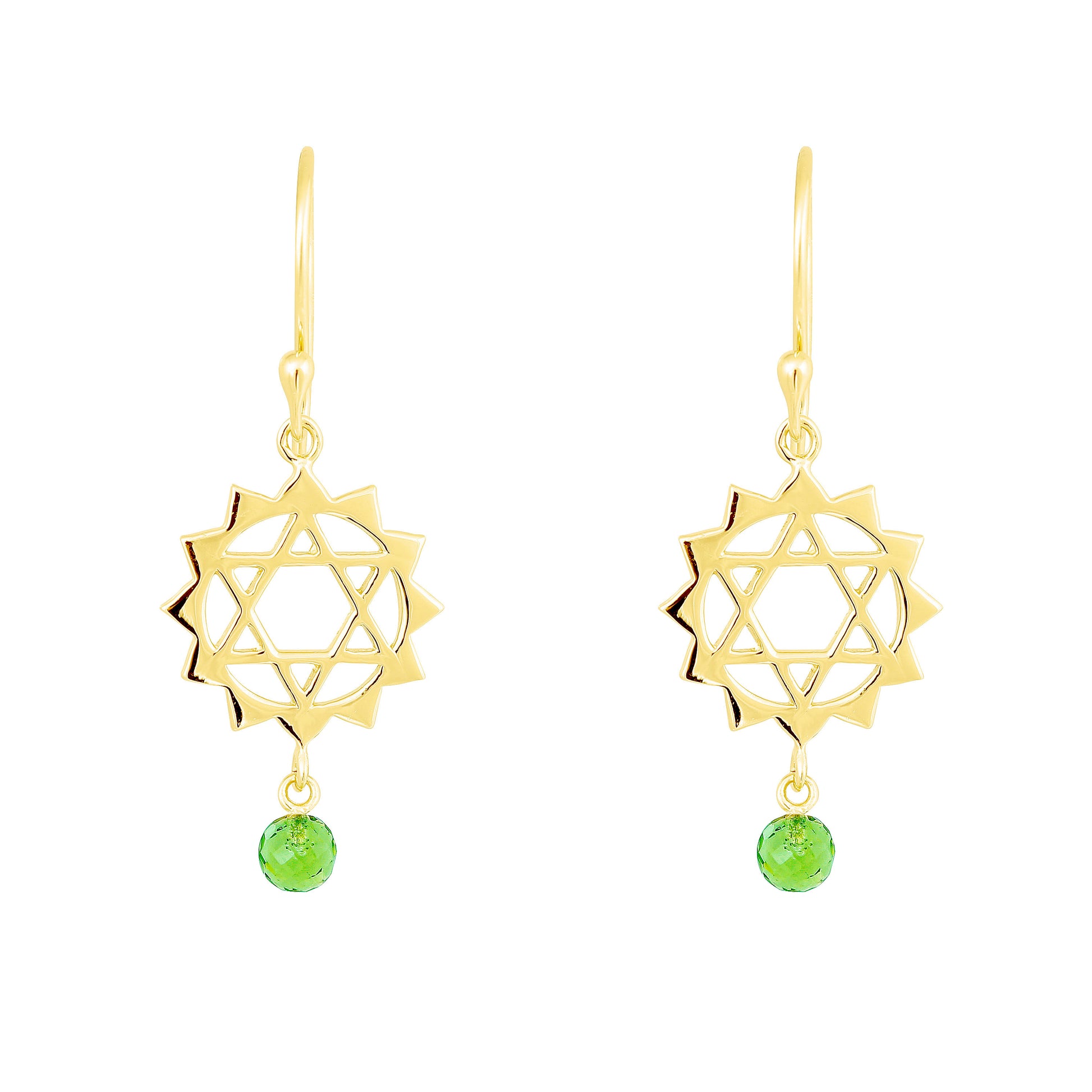 Die Anahata Ohrringe aus der „Karma Friendly“-Kollektion in Sterlingsilber/silbervergoldet sind vom Herzchakra inspiriert. Sie zeigen ein filigranes Sechseck, mit einer leuchtenden Peridot Kugel – der Stein des Herzchakras – strahlt. Dieses liebevolle Design symbolisiert Ausgeglichenheit und Harmonie, ohne dogmatisch zu wirken, und ist ein zarter Begleiter für den Alltag.