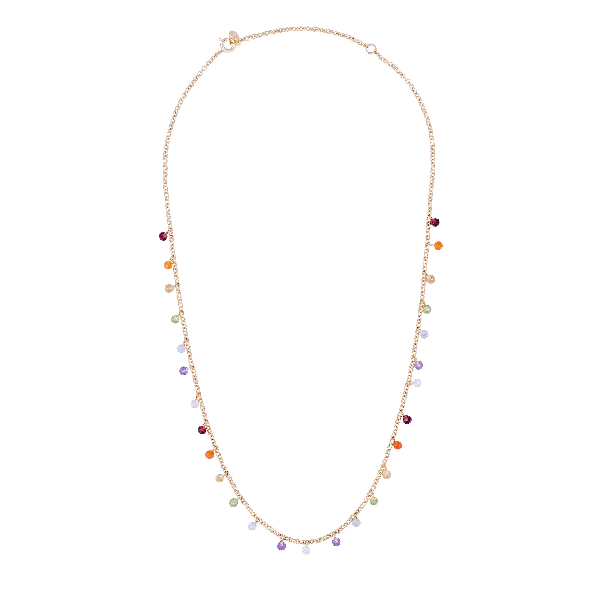 Die vergoldete Chakra Ball Kette vereint in einer minimalistischen Form alle sieben Hauptchakren Steine. Die fein geschliffenen facettierten Kugeln geben der Kette einen farbenfrohen Look und fördern das Gleichgewicht und die Harmonie der Chakren. Ein must-have für jeden, der sich mit Heilsteinen und Energiearbeit beschäftigt.