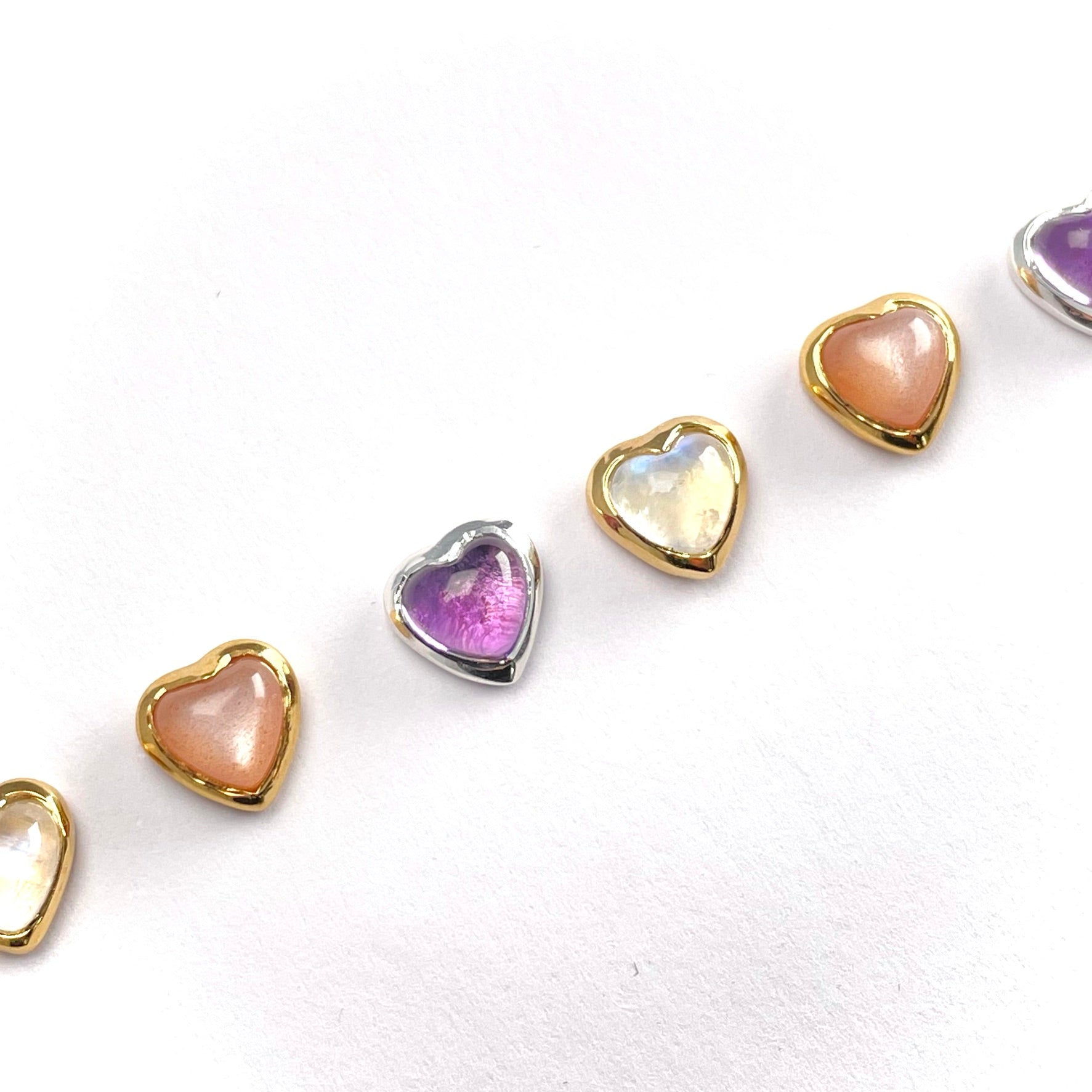 Entdecken Sie unsere Dil Rainbow Moonstone Studs in Herzform! Die vergoldeten Ohrstecker aus Sterling Silber sind eine tolle Erweiterung für jede Sammlung.