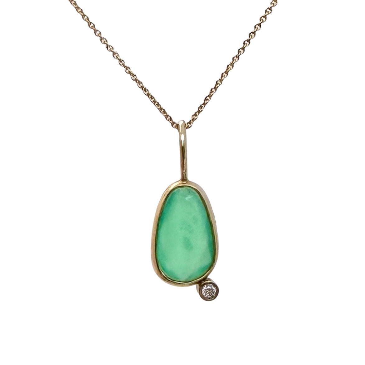 Dieser zarte Anhänger aus 18kt Gold besticht durch seine organisch fließende Form, die natürliche Eleganz ausstrahlt. Ein kleiner, asymmetrisch platzierter Diamant erinnert an einen Schönheitsfleck und verleiht dem Schmuckstück eine individuelle Note. Perfekt für Liebhaber feiner, subtiler Details mit zeitloser Ausstrahlung.