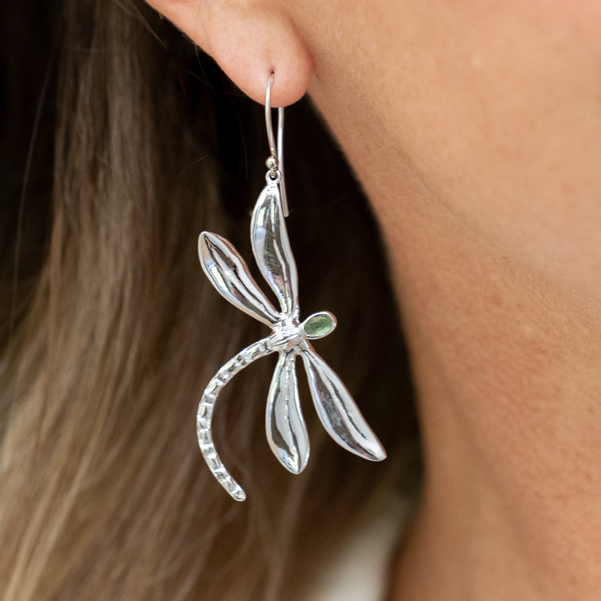 Diese wunderschönen Libellen-Ohrringe fangen die Leichtigkeit der Natur ein. Der Kopf der Libelle ist ein schimmernder Labradorit, dessen mystisches Farbenspiel die detailreichen Flügel perfekt ergänzt. Mit einer Länge von 5,5 cm sind die Ohrringe ein zarter, aber auffälliger Begleiter für den Alltag, der die Magie der Libelle symbolisiert